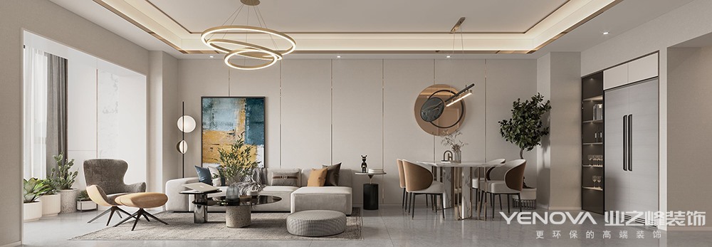 户型的缺点:玄关区域狭小。入户玄关区域做嵌入式玄关柜整体性更强,大理石加上金属元素的餐桌,搭配造型独特的沙发,显得非常大气。