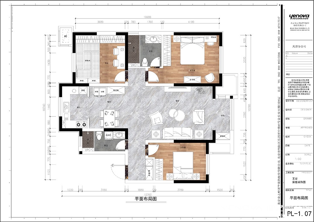 135㎡三居现代简约风格格调平园