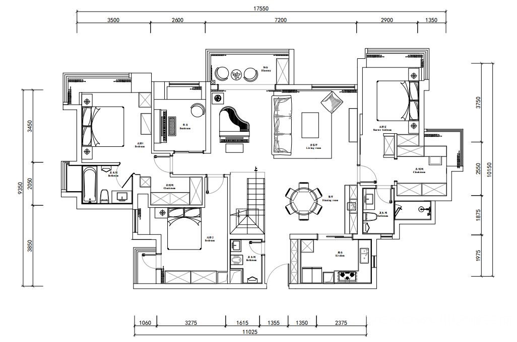 小区:南城都汇 面积:220㎡ 户型:复式 风格:新中式风格