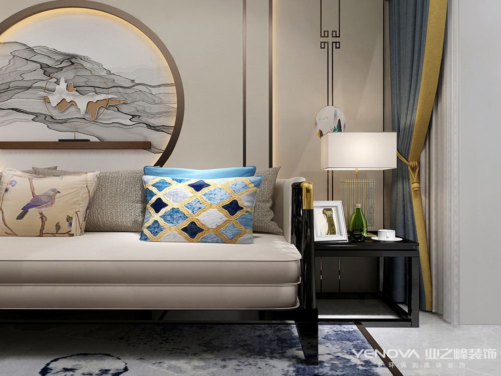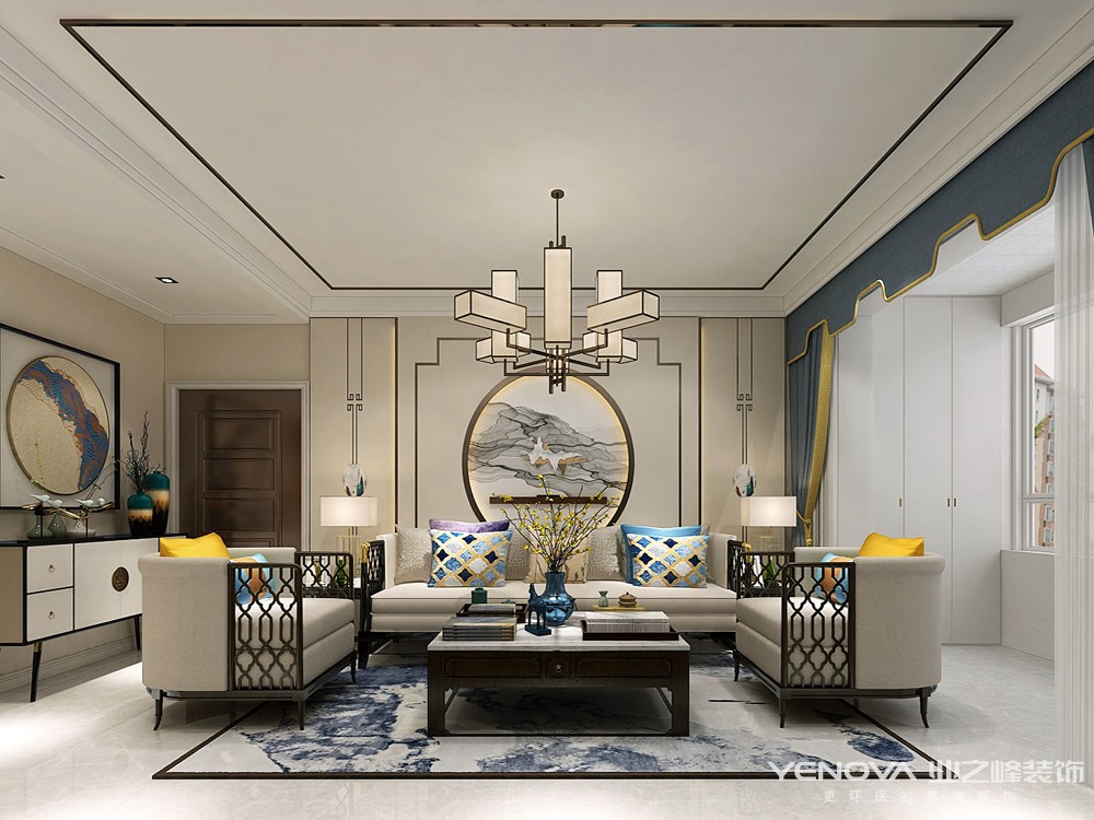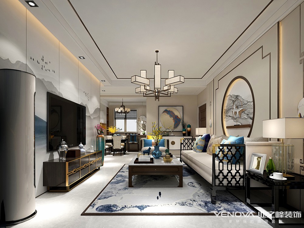 新中式风格非常讲究空间的层次感,在需要隔绝视线的地方,则使用中式的屏风或窗棂、中式木门、工艺隔断、简约化的中式“博古架”,通过这种新的分隔方式,单元式住宅就展现出中式家居的层次之美。再以一些简约的造型为基础,添加了中式元素,使整体空间感觉更加丰富,大而不空、厚而不重,有格调又不显压抑。