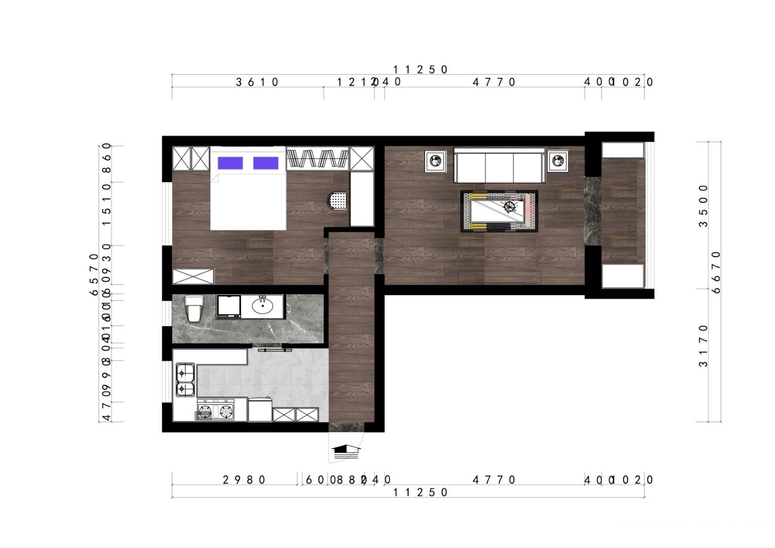 由于是老旧小区,整体主体无法进行大面积改动,只是针对厨卫进行了整体改造。开放式厨房让整体本就不大的房子通透感得以增加,原先卫生间过于狭小,改造后增加了独立的淋浴房,做到了干湿分离。