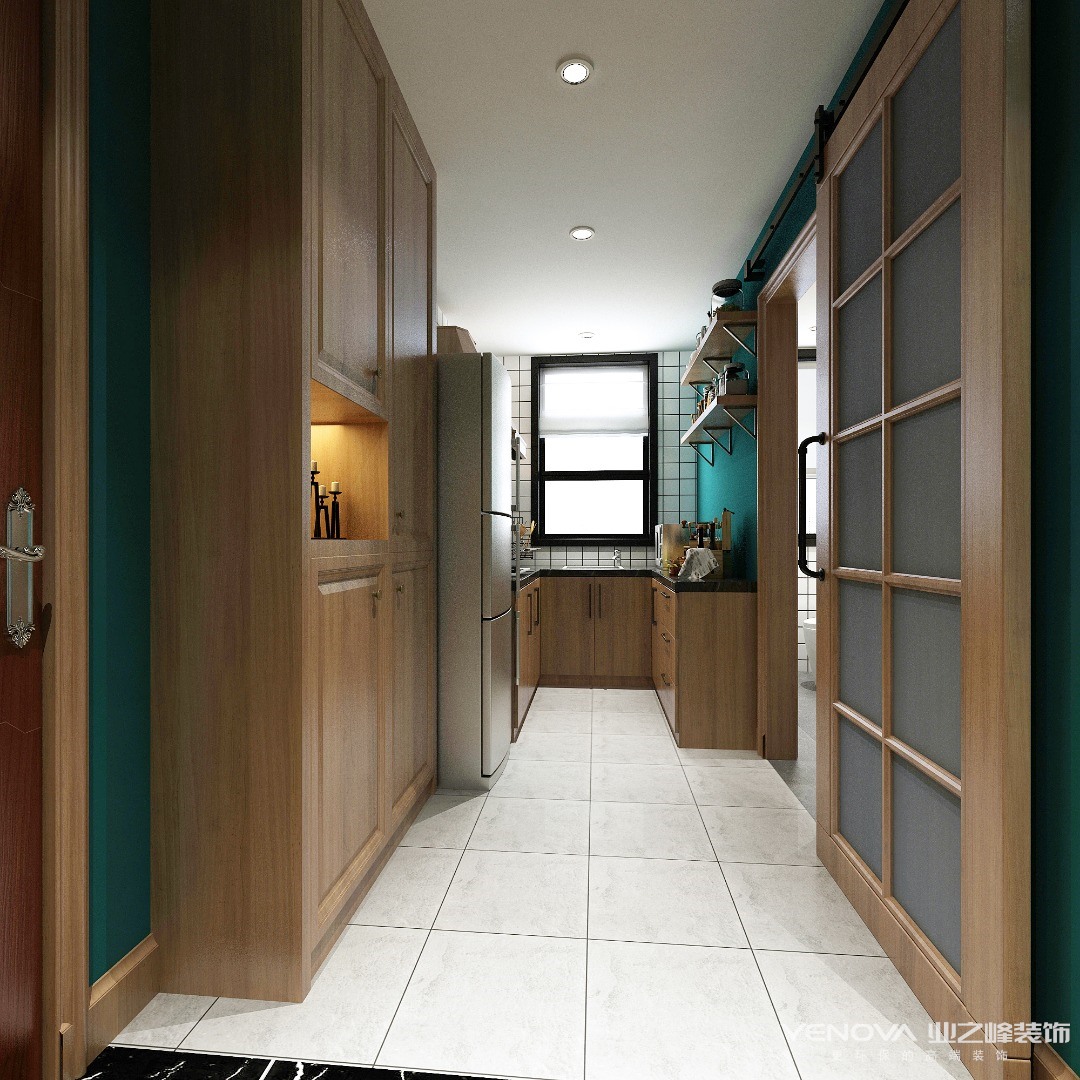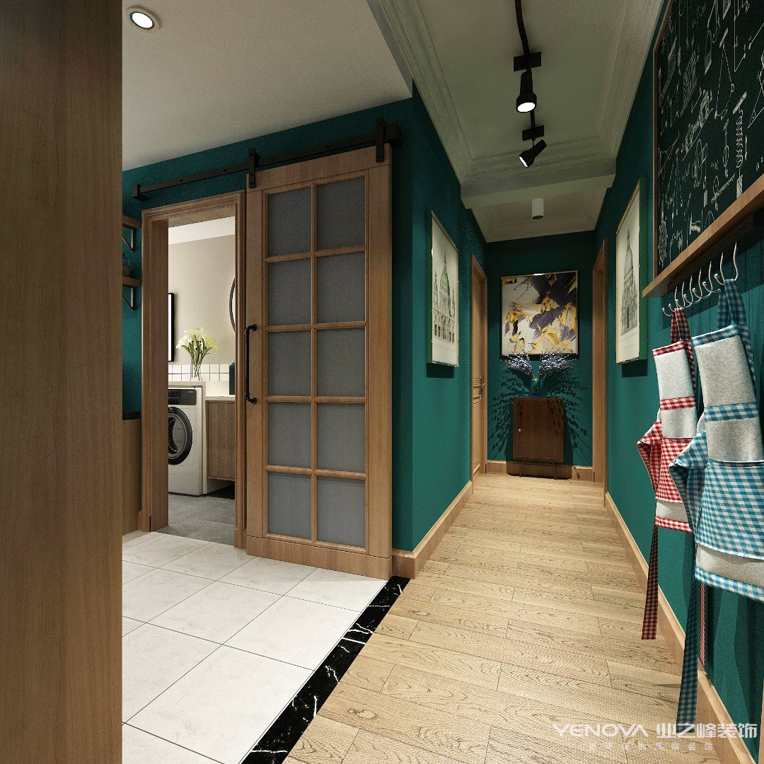色调方面。大面积采用深色墙漆去呼应风格定位,配以原木配色,让整体风格走向准确。家具上,客户的爷爷奶奶留下了一个结婚时的大衣柜以及两个小斗柜,因对他们二老的思念,想把它们设计到自己的房子里。于是其中一个小斗柜做了改造,放在了入户正对的玄关位置,其余家具则放到了客厅(由一间卧室改造而来)空间。也算是了结了客户的一个心愿。