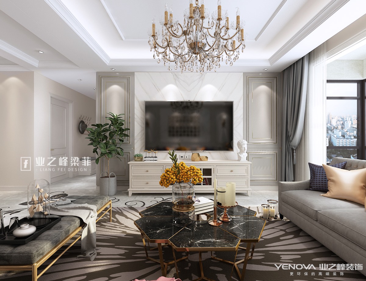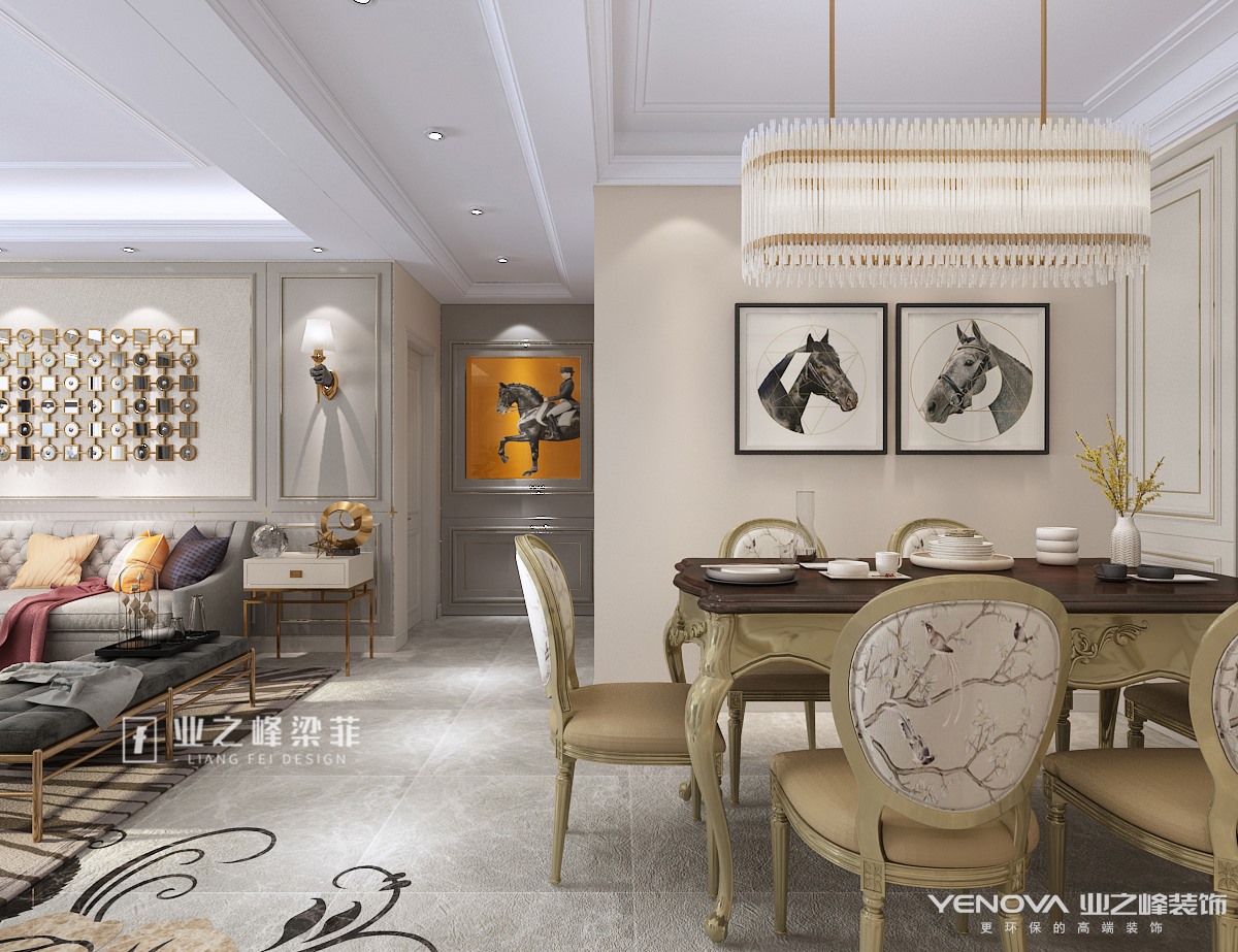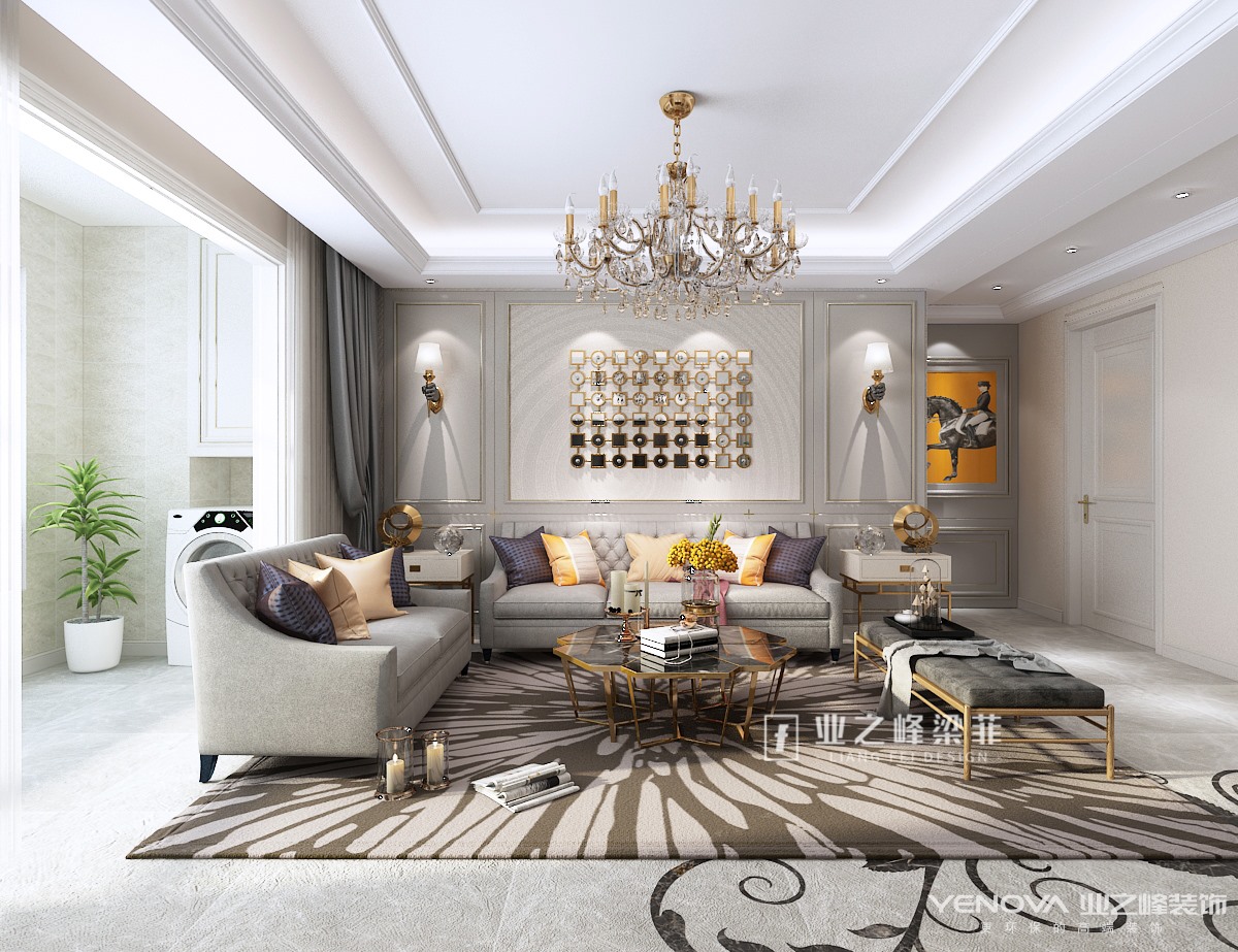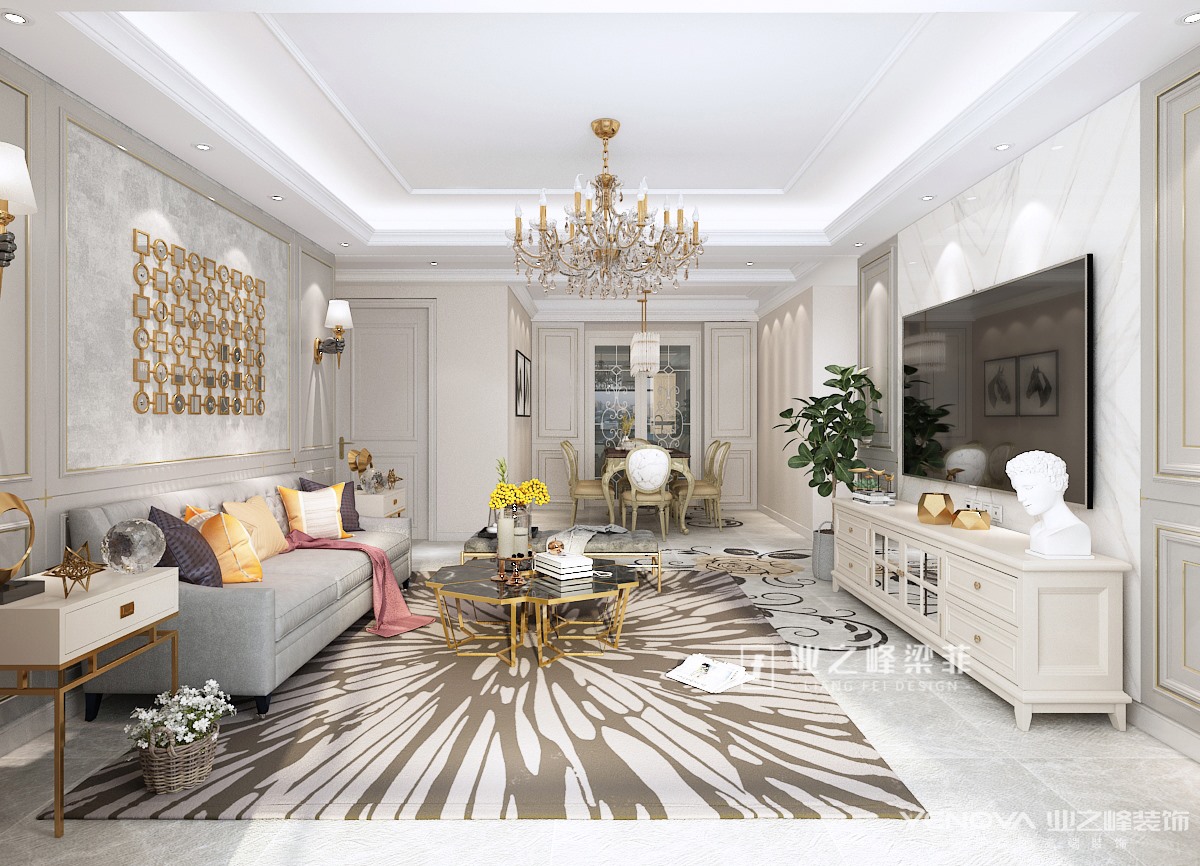 本案位于济南公园九里,建筑面积130平,设计风格定位美式风格,全案抛弃了美式风格古板厚重的质感,整体设计融入轻奢风格元素,金属材质点缀,布艺沙发融合,墙板与石材的相辅相成,让整个空间轻松舒缓,自由浪漫,而在细节处理上,巧妙运用不同材质所带来的的体感与视觉感受,让整体视觉柔和舒缓,体感亲肤舒适