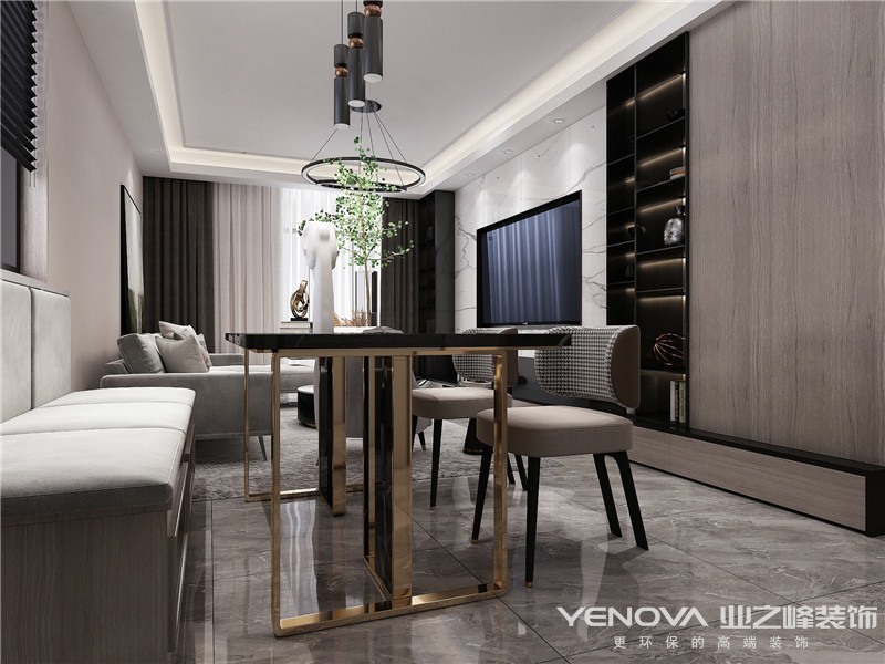 本案的业主从年龄上来讲会稍微年轻点,对于自己的风格定位也比较明确,对于现代风格又觉得过于简单,想要带点金属质感的元素在里面。