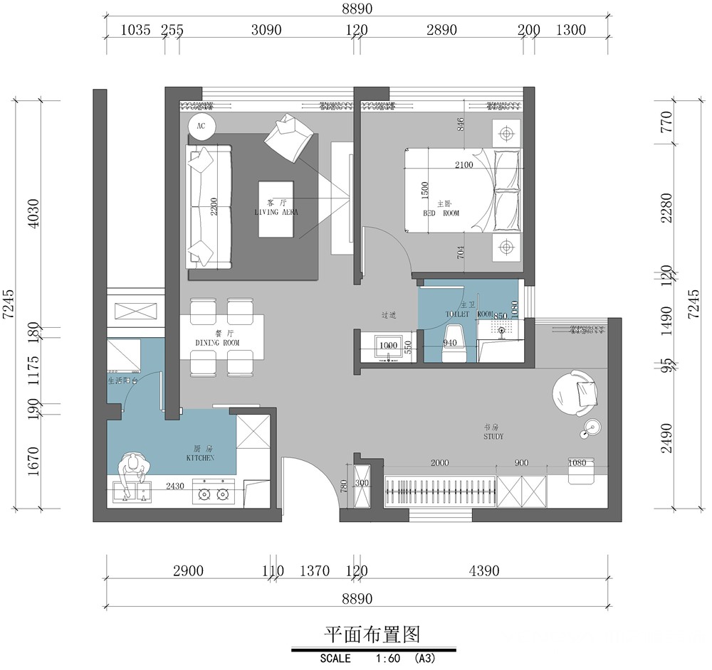 小区:龙湖紫宸香颂 面积:50㎡ 户型:二居 风格:现代简约风格
