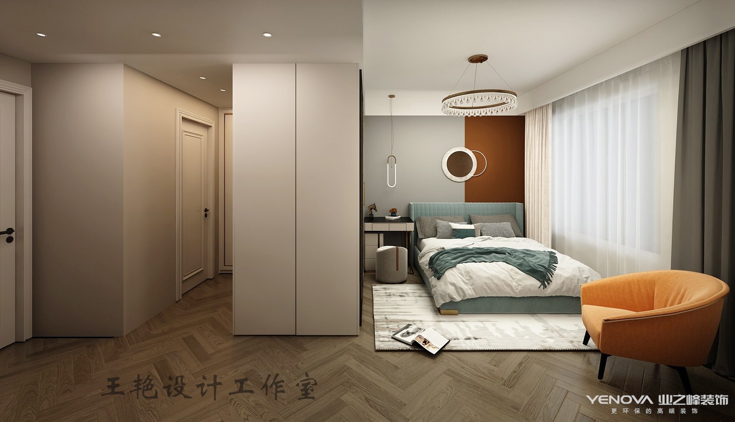 轻奢不是一种设计风格,而是一种代表独特品味和风格的生活态度。轻是一种优雅的态度,低调舒适,但不损害高贵优雅;奢侈是一种既不让人有压力又追求品质和精致生活的状态。这家主任是一位花艺师,更加注重色彩的搭配,所以在卧室的主墙上选择乳胶漆的撞色,让空间更加灵动。