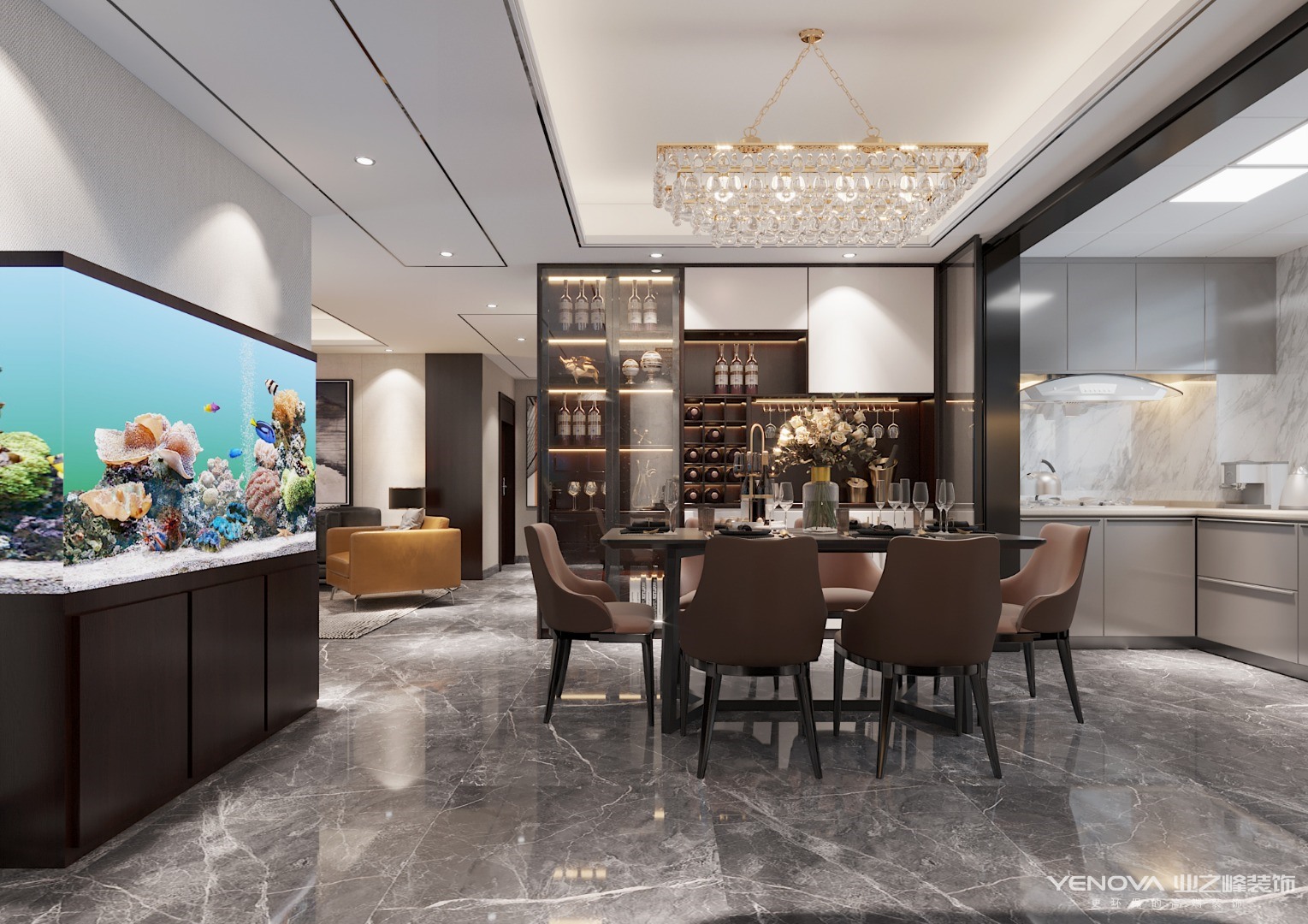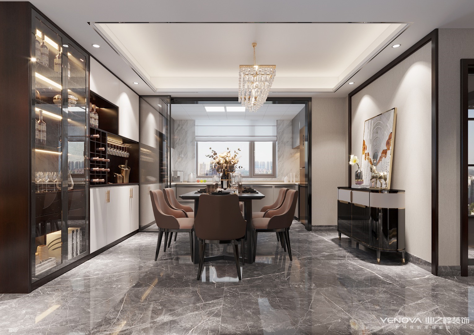 用室内建筑的概念去把握空间的对位关系,布局开敞,开放式厨房与客餐厅融为一体,宽敞别致又灵活多变。游走在流转的动线,都经过精心规划,理性之美隐约可见。