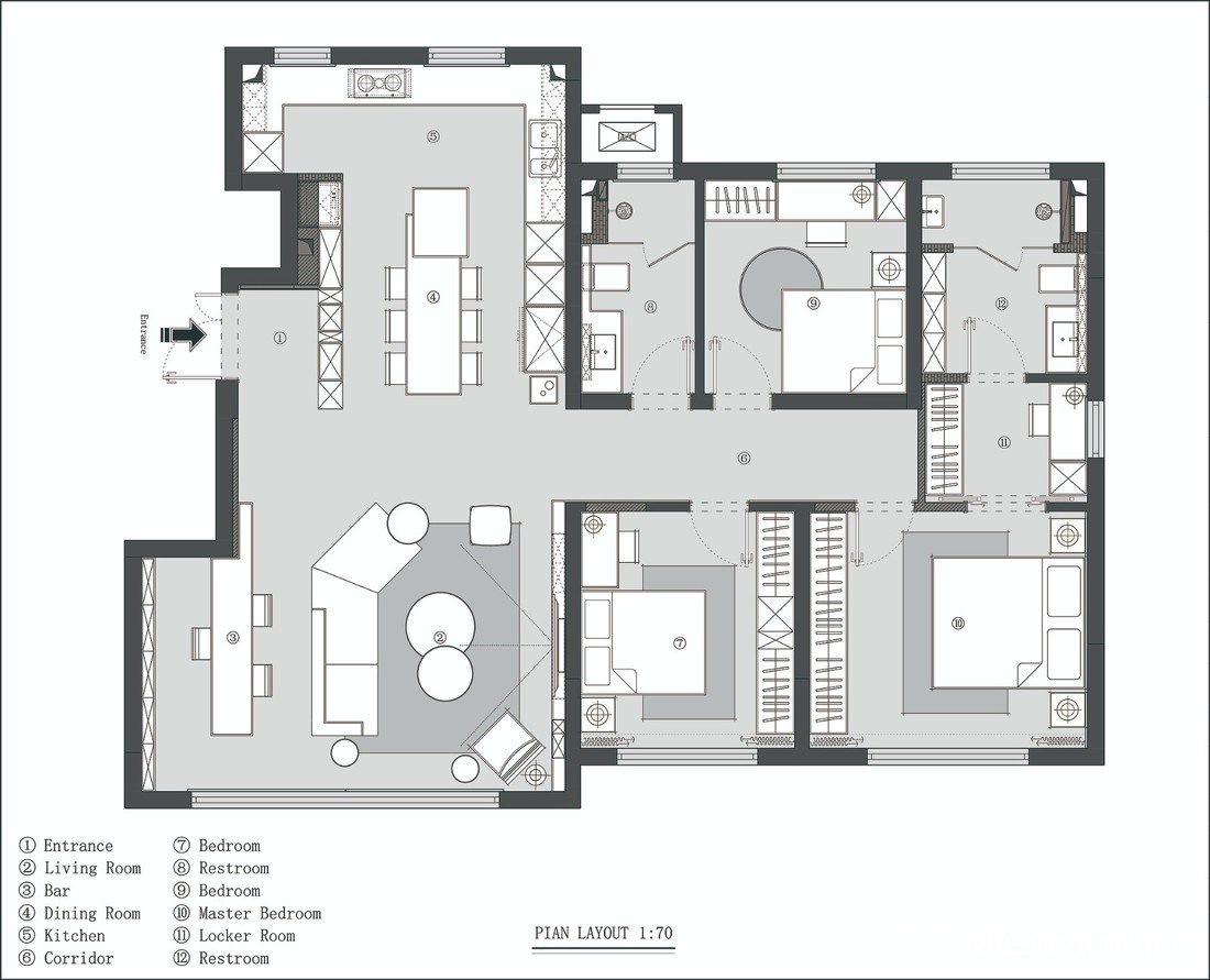 本案原始户型是一套中规中矩的精装房, 自身结构相对合理。 但对于一个四口之家来说, 居住空间就显得过于紧凑, 且储物功能不足、空间缺乏交流感。 结合业主的实际需求情况,