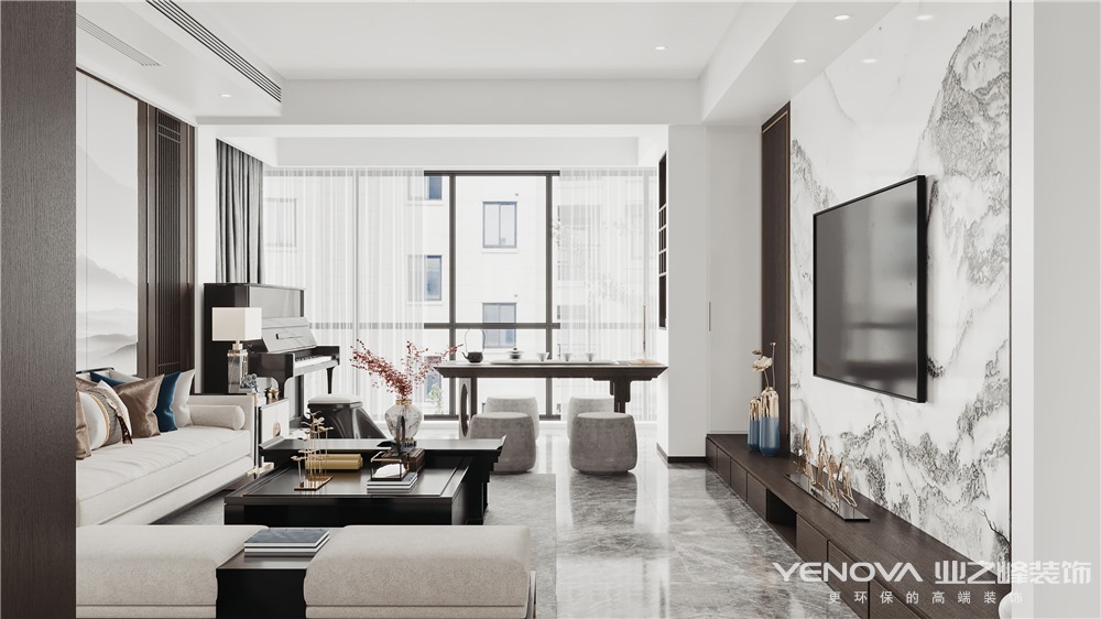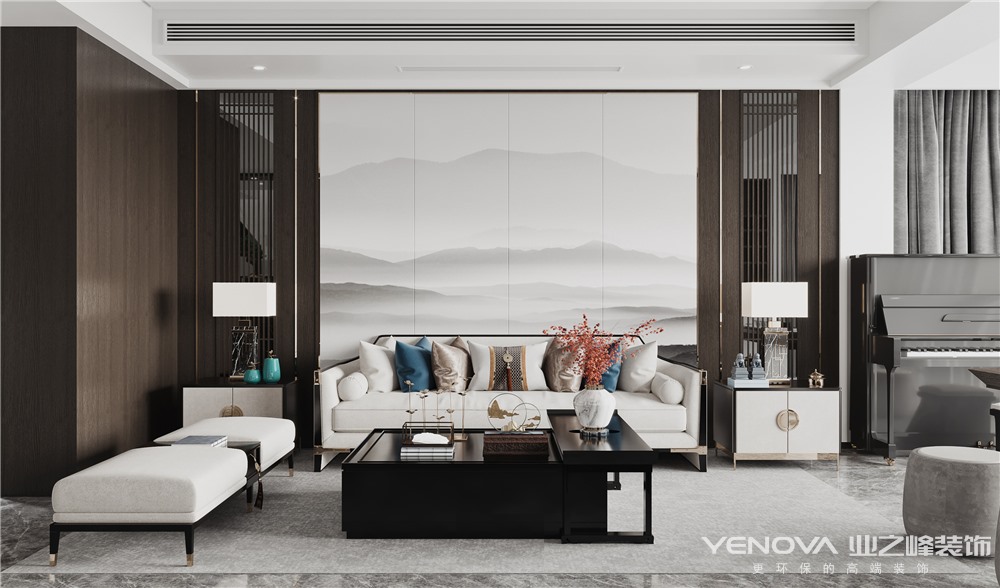 本案风格为新中式,整体造型简约,在新中式风格背景的前提下,揉和一些古典中式的元素在里面,保留了传统文化,又结合当代环境, 完成古典和现代的交融。
