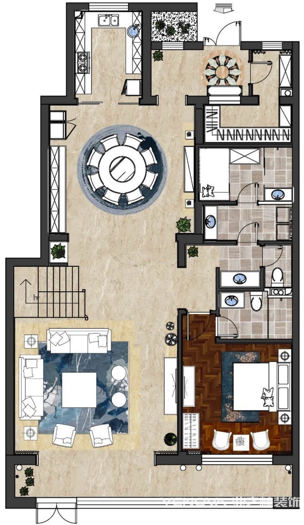 小区:龙湖天宸原著 面积:156㎡ 户型:别墅 风格:新中式风格