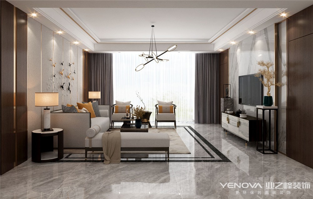 新中式风格在设计上延续了明清时期家居配饰理念,提炼了其中经典元素并加以简化和丰富,在家具形态上更加简洁清秀,同时又打破了传统中式空间布局中等级、尊卑等文化思想,空间配色上也更为轻松自然。