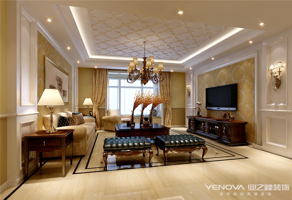本案为成都业之峰装饰的美式风格案列,在设计上追求空间变化的连续性和形体变化的层次感,室内多采用带有图案的壁纸、地毯、窗帘,家具门窗多漆为白色,画框的线条部位装饰为线条或金边,在造型设计上既要突出凹凸感,又要有优美的弧线。