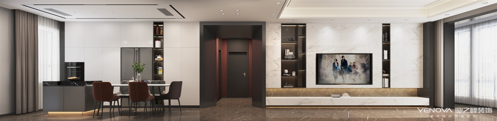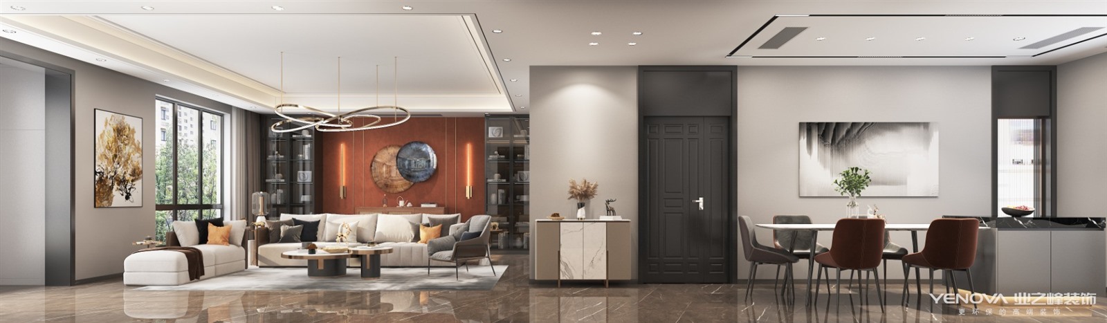 新中式风格是一种既继承了中国古典园林的基本元素及造园手法,又融合了现代简约的几何图案及线条的设计风格,通过对中国古典园林设计思想的理解并提炼,用现代的符号将中国园林的神韵体现出来就是新中式风格。这几年,随着房地产企业对新中式风格的宣传和打造,一批批新中式风格的住宅项目涌现,其中精品更屡屡被大众所传颂推崇。在此前提下,新中式风格逐渐成为一种引领潮流的设计思潮之。新中式风格以符合现代人的生活习惯的室内居住空间现实舒适的居住生活。其内部空间布置,如客厅、餐厅、卧室、书房等完全体现现代生活要求。在室内色彩方面,本案以红色、暗红、琉璃黄、长城灰、玉脂白、水墨黑和木原色来打造新中式的气氛。除了保留中式的韵味外,还加了大理石、玻璃、灯带、等现代材料,使空间又包含了现代生活气息;光源上舍弃了以往的烛光环境,使用简洁几何灯具,大量采用自然光;在家具搭配上主要取材与自然,以木材为主,在合适的地方用合适的材料。在室内绿化上,以竹子为主,竹子自古以来就是文人墨客所歌颂的主题之一,竹子这个意象在中国传统文化当中,它是表示文人刚直不阿,有节气,有骨气,是这样一个象征。