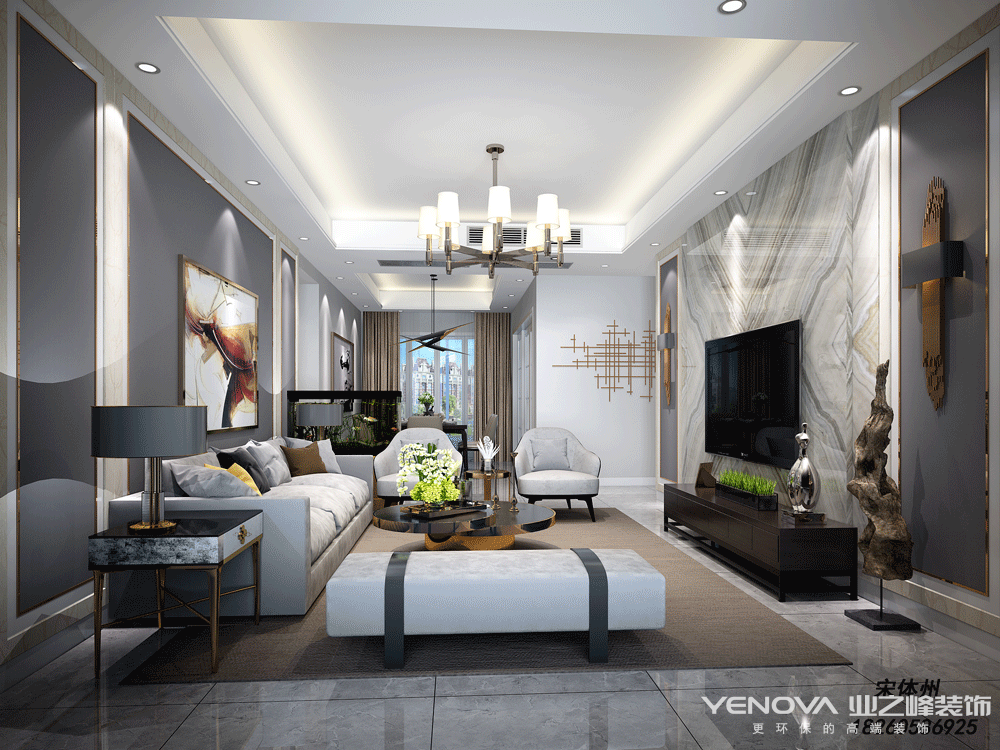 小区:世茂新界 面积:105㎡ 户型:三居 风格:现代简约风格