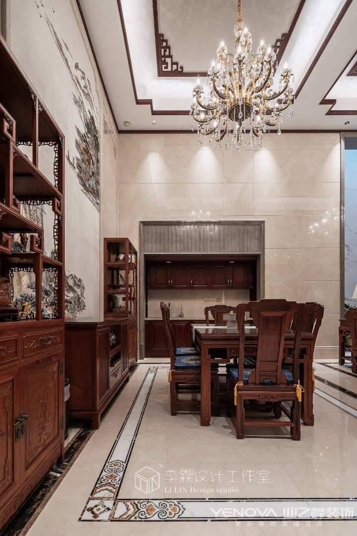 晓寒飒飒侵驼褐,山色盈盈入酒杯。案例传承了中国传统古典风格的典雅和华贵,并结合古典中式装饰元素,体现出中式家具的层次之美,使整个空间都散发出迷人的东方魅力。