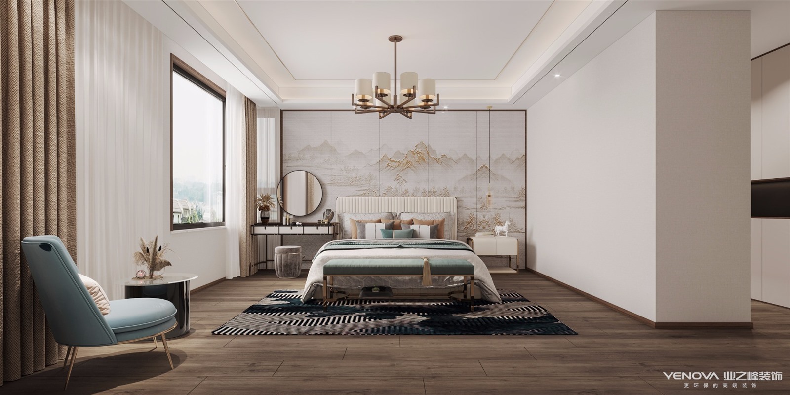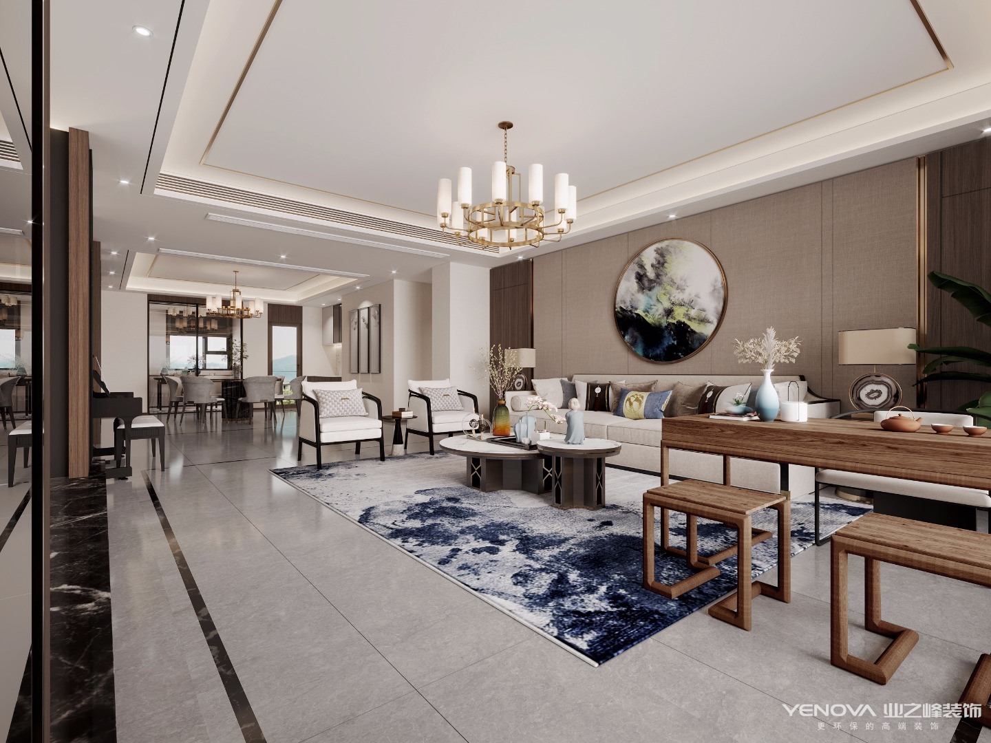 小区:中建国熙台 面积:180㎡ 户型:四居 风格:新中式风格