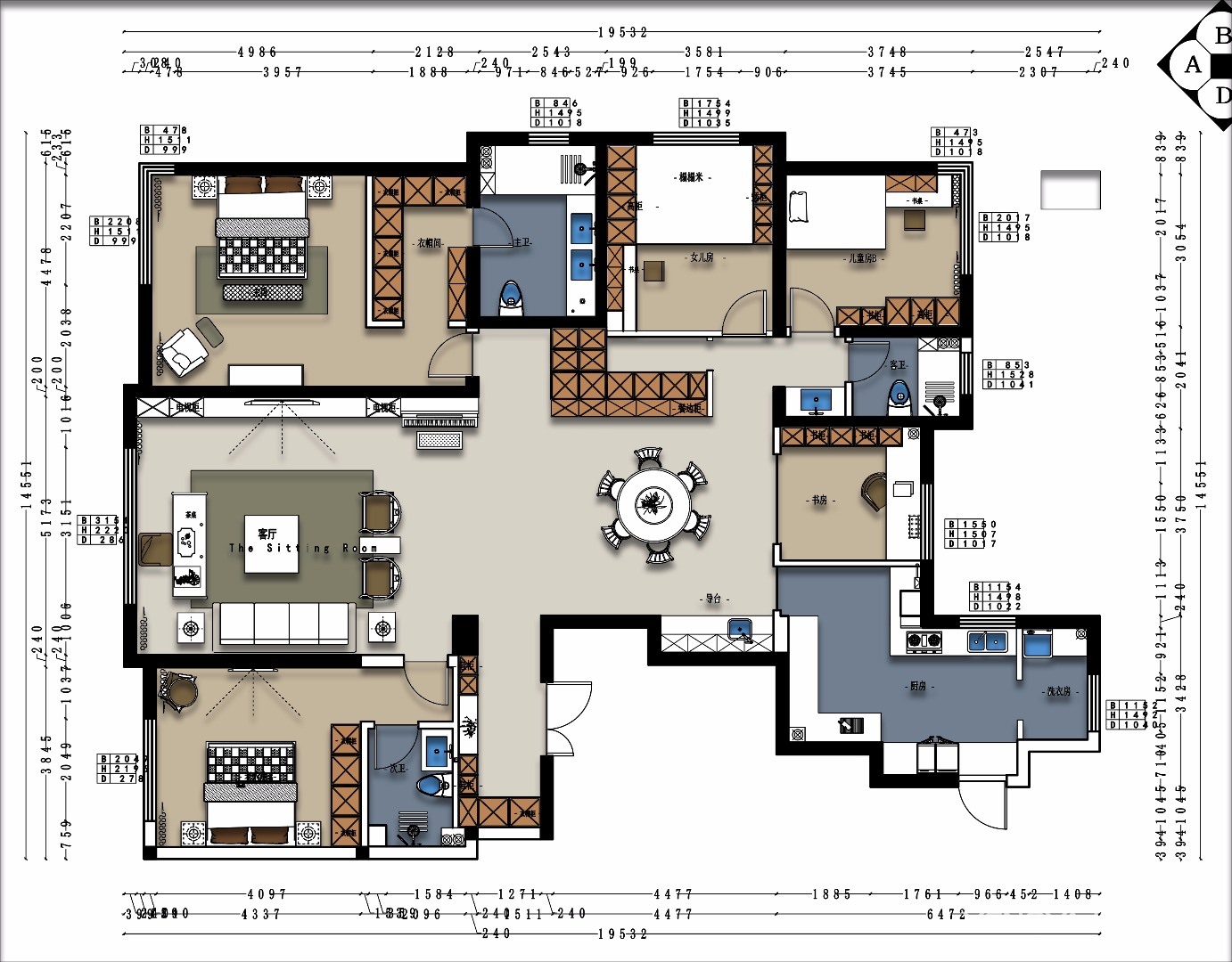 180㎡四居新中式风格中建国熙台