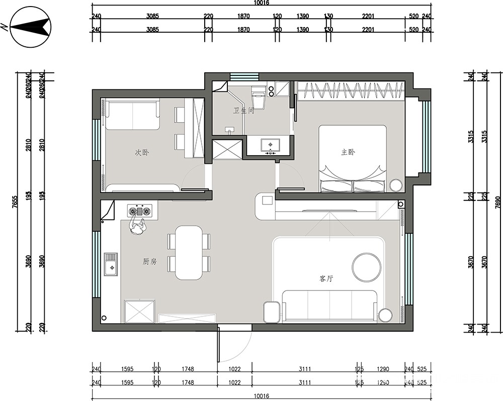 小区:世茂璀璨公园 面积:75㎡ 户型:二居 风格:现代简约风格