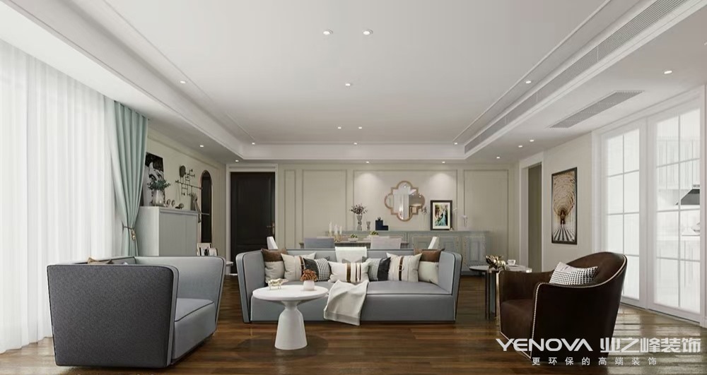 本案主题是美式的质感,现代的舒适感。粟色家具的厚重与自然朴实很好的平衡的墙面色调。家居自由随意,简洁怀旧,暗棕地板的色彩散发出自然的味道。无主灯的设计让空间的灯光设计更加丰富。美式的自然和简约的舒适打造出自己喜欢的感觉。