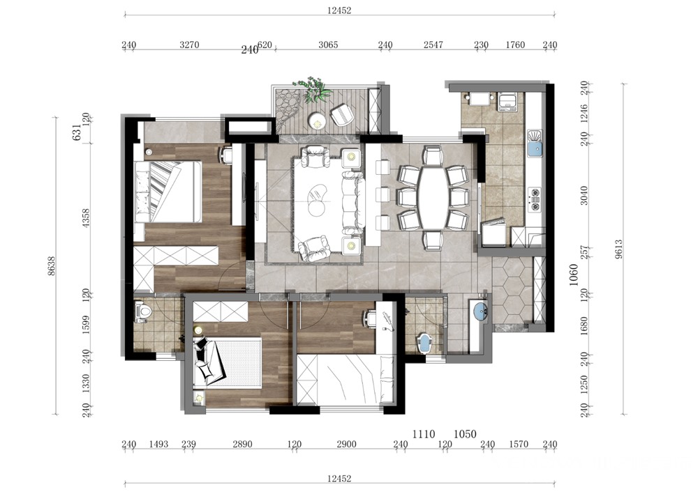 小区:炜岸城 面积:125㎡ 户型:三居 风格:美式风格
