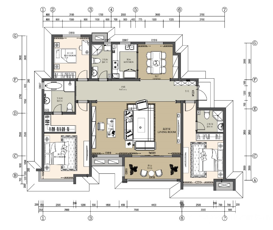 小区:凯利翡翠园 面积:173㎡ 户型:三居 风格:法式风格