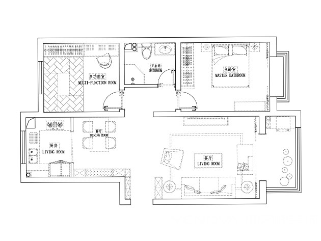 小区:天河悦城 面积:120㎡ 户型:三居 风格:现代简约风格