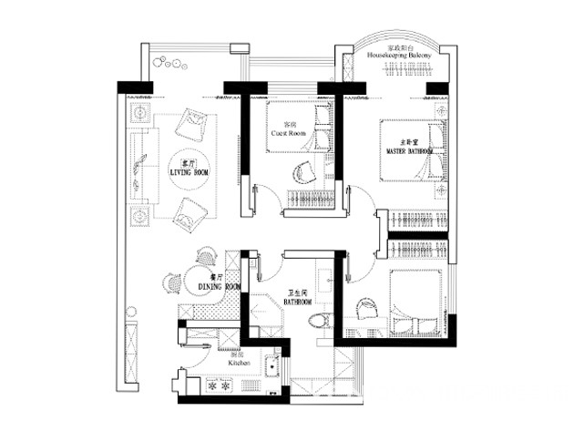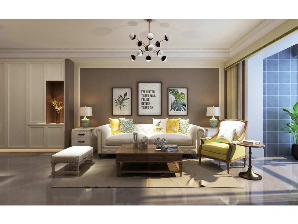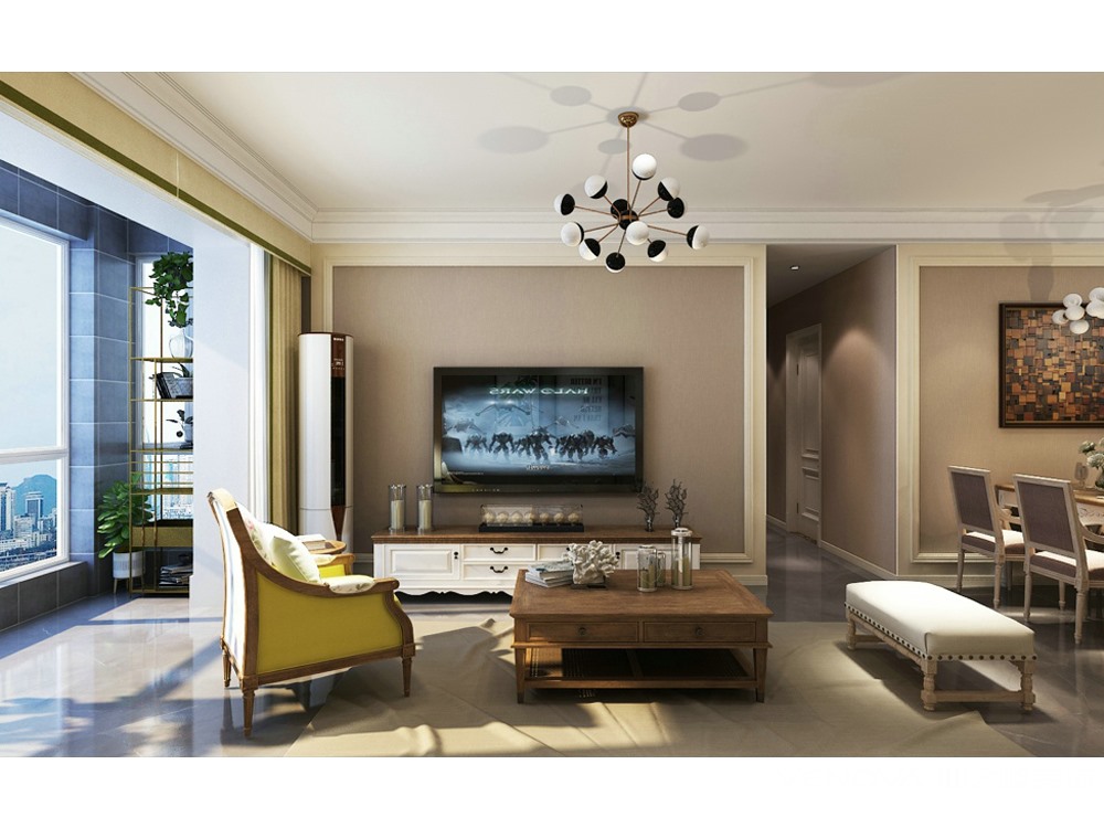 小区:天山熙湖 面积:110㎡ 户型:三居 风格:美式风格