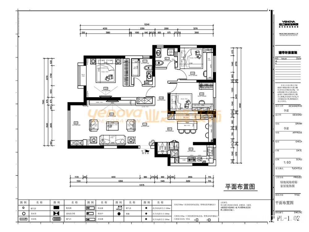 小区:绿地阅海府邸 面积:135㎡ 户型:三居 风格:法式风格