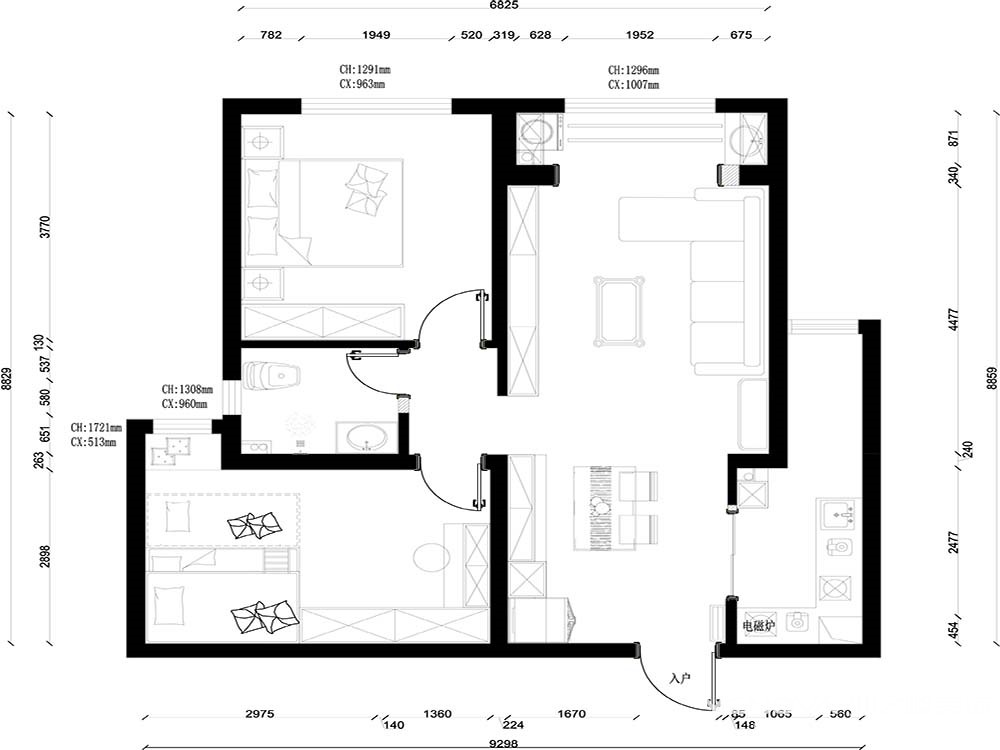 71㎡二居现代简约风格武汉大学信息学部教工宿舍