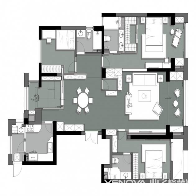小区:恒大华府 面积:180㎡ 户型:三居 风格:新中式风格
