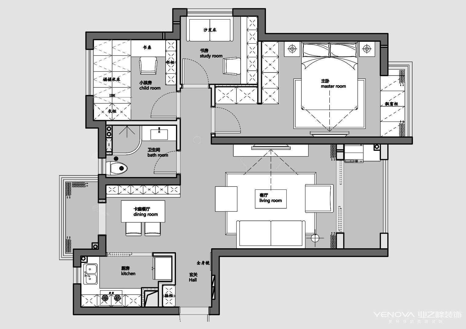 本套方案为北欧装修风格,北欧风格在关注大众利益的同时,也没有缺失对小众的关怀。例如消除残障人士在生活上的不便,为其设计便捷的人性设计,实现社会公平。它们都体现了北欧风格设计对人的周全关心。