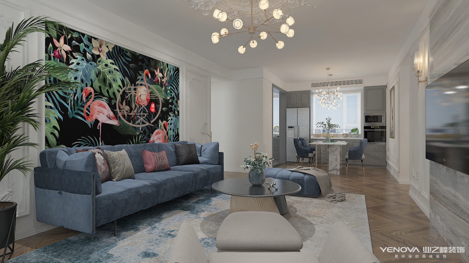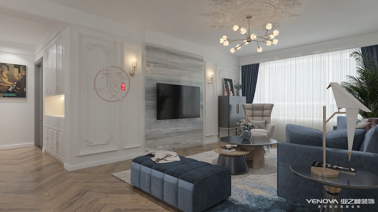 本案客户多次去往法国,对法式的憧憬和向往。法式风格如同法国这个国家一样,浪漫迷人,仿佛普罗旺斯的阳光,洒满你的家。蓝色调营造浪漫时尚法式风情,寻求心灵的自然回归感,将法式传统的三颜色与当季流行色融合,不失法式的贵气和浪漫