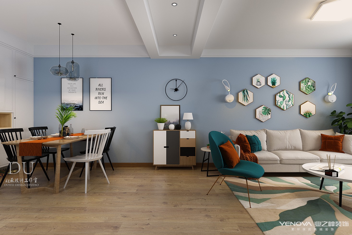业主比较年轻,要求简单实用,想有点设计又不想做的格外复杂。整体设计北欧风格,墙面刷浅蓝色,主要以软装点缀为主。吊顶以简单的石膏板带装饰,简单不失稳重。