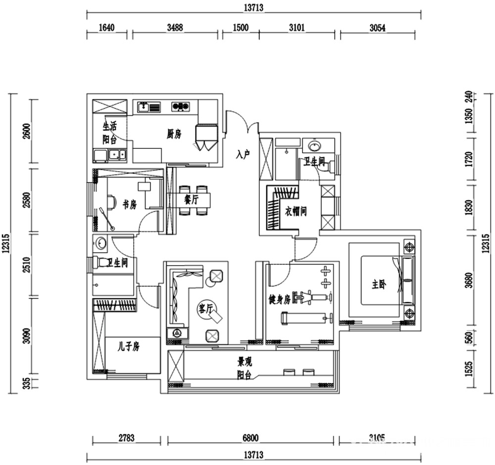 小区:龙湖梵悦台 面积:137㎡ 户型:四居 风格:现代简约风格
