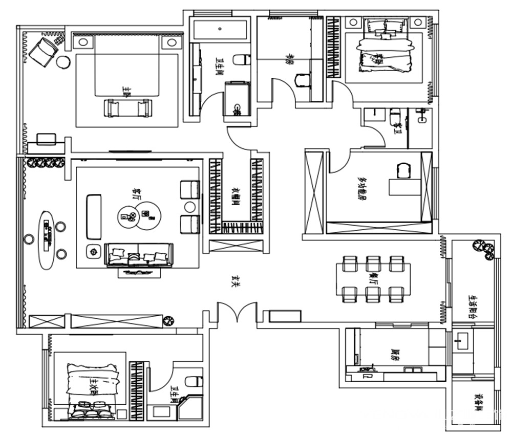 小区:西派宸樾 面积:240㎡ 户型:四居 风格:新中式风格