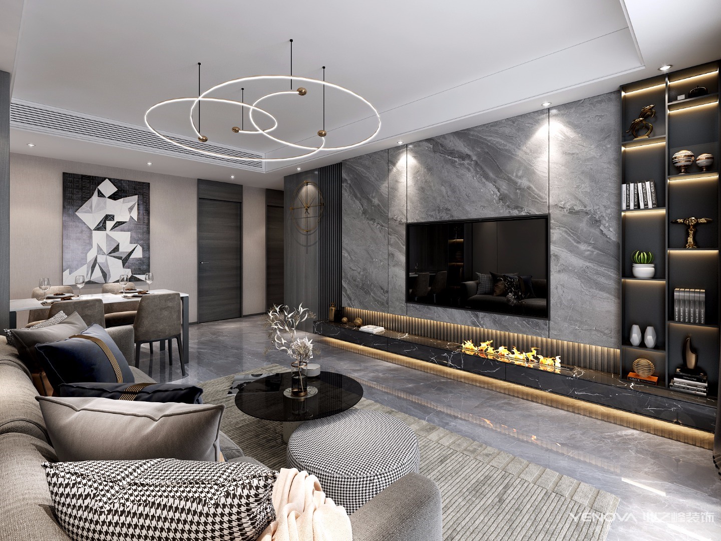现代简约风格在整体风格上简洁明快,注重室内空间的使用功能,主张弃繁琐的装饰,室内布置按功能区分的原则进 行、家具布置与空间密切配合,色彩造型紧跟时尚潮流;强两功能性,简单流畅的线条,前卫时尚不在辅材使用 则化玻璃、不锈钢烤漆玻璃等时尚感强烈的新型材料,同时与完美的软装相结合,给人全新的体验。