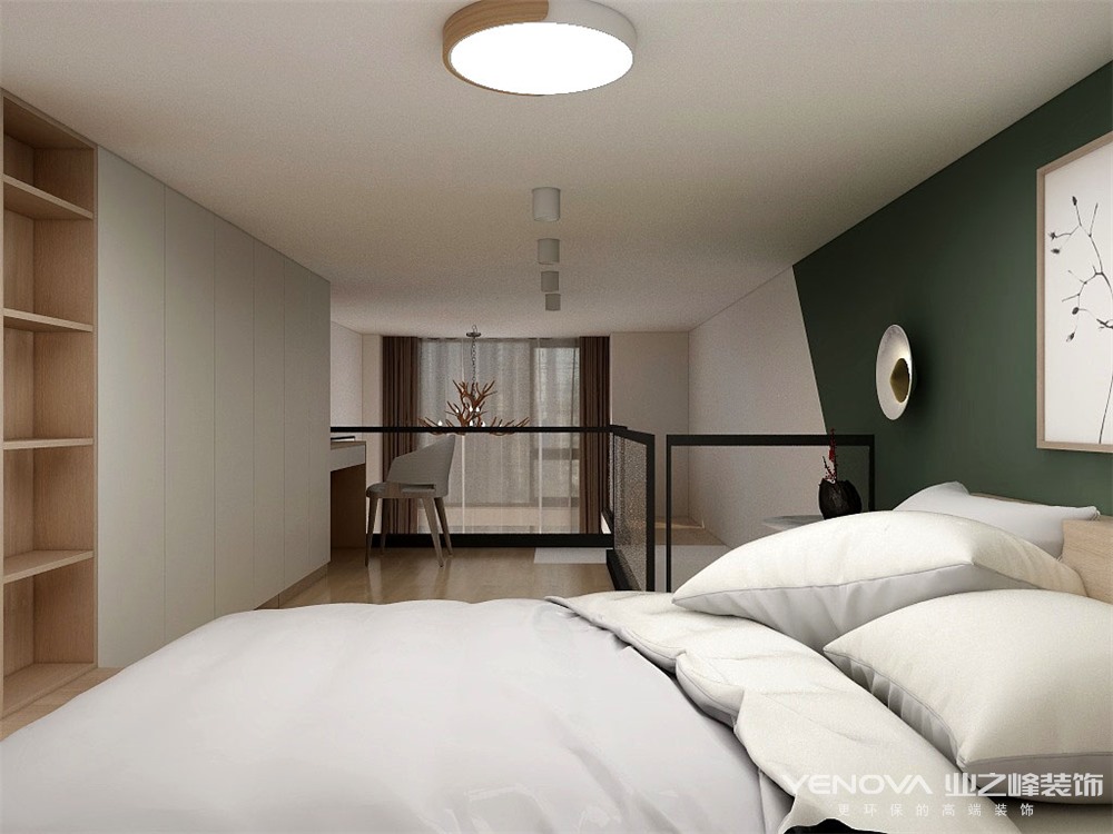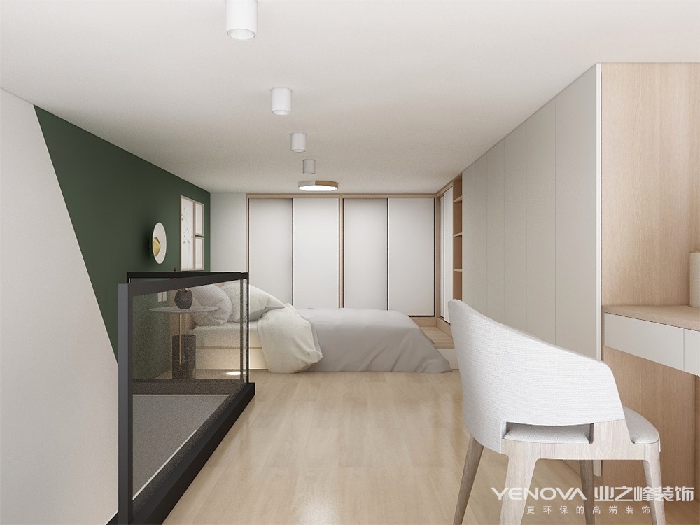 本案业主是位独立平面设计师,有长期在家办公的需求,因此将一楼靠近窗户的区域规划成办公及休闲的综合空间,当阳光透过高挑的落地窗照射进整个房间,泡上一杯咖啡靠在窗边沙发慵懒地小憩一会或许能激发业主更多设计灵感,整体偏日式原木风的硬装设计在注重主要功能需求之余,也能使空间显得更加干净,而不会因为繁杂的材质扰乱业主的工作思绪;二楼榻榻米地台床及组合衣柜设计合理规避层高的限制并充分利用有限的空间创造出足够业主使用的衣帽间及梳妆区。