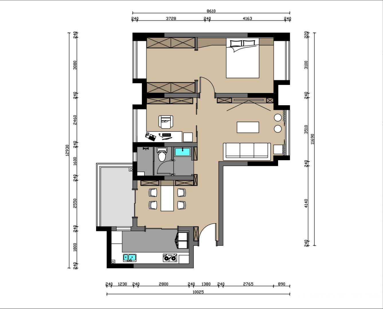 小区:中信城左岸 面积:98㎡ 户型:三居 风格:现代简约风格