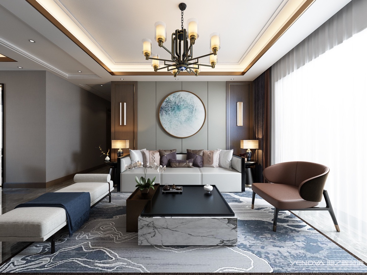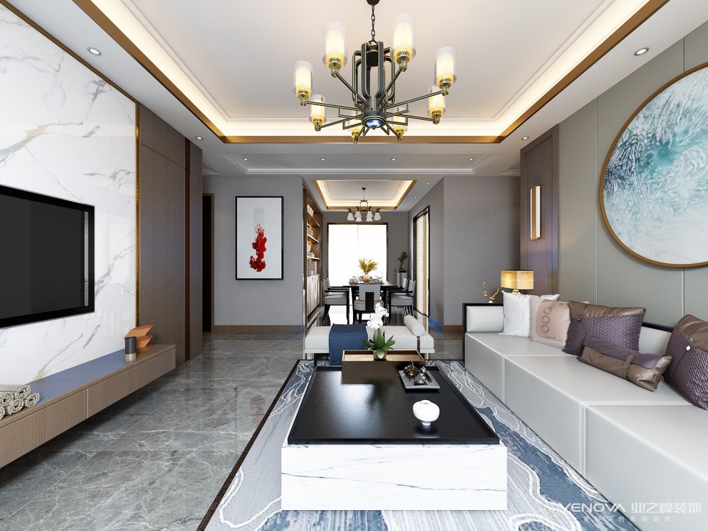 142㎡平层新中式风格绿地华彤苑