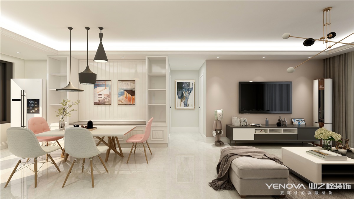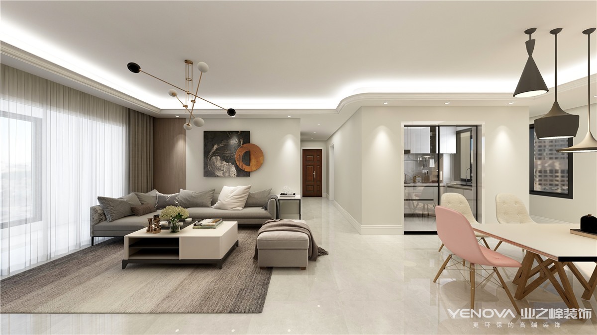 客餐厅1:现代简约风格以灰白黑为主色调,搭配上充满个性的吊灯,显得简约而不简单。