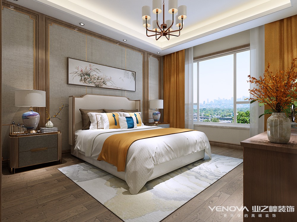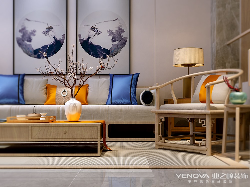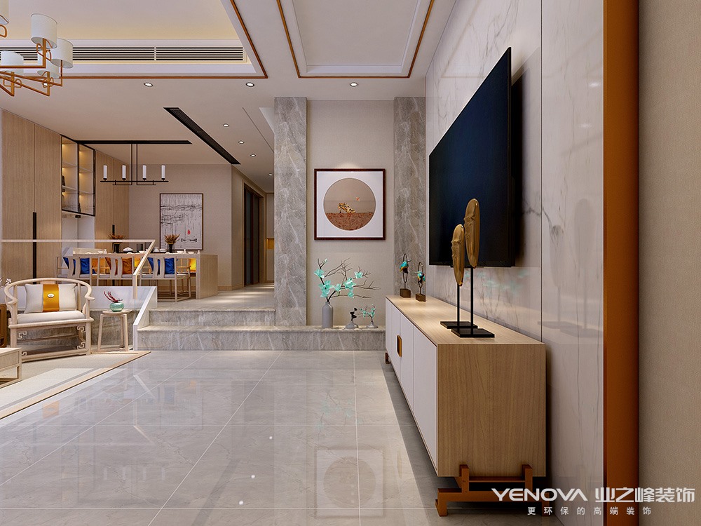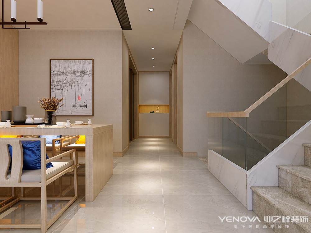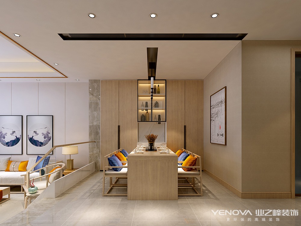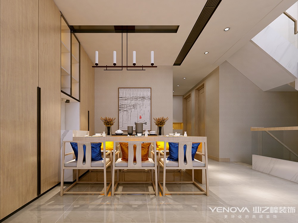 新中式经过设计的打磨与堆砌去展现一个天然质朴的空间,一个青瓷的装饰挂盘,在柔和的灯光下更显岁月的悠远。