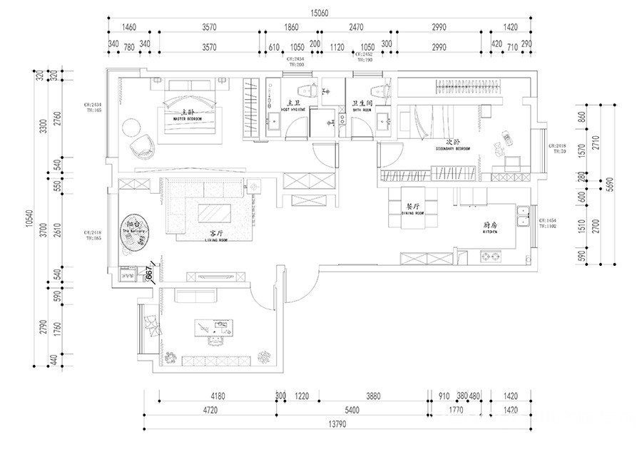 小区:融创中心 面积:155㎡ 户型:三居 风格:现代简约风格