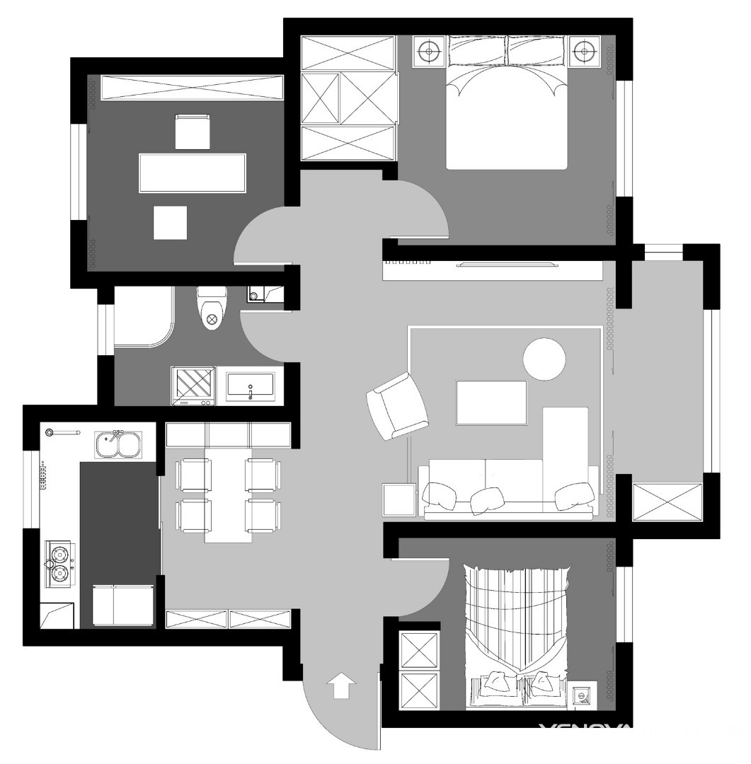 小区: 朝阳领域 面积:119㎡ 户型:三居 风格:现代简约风格