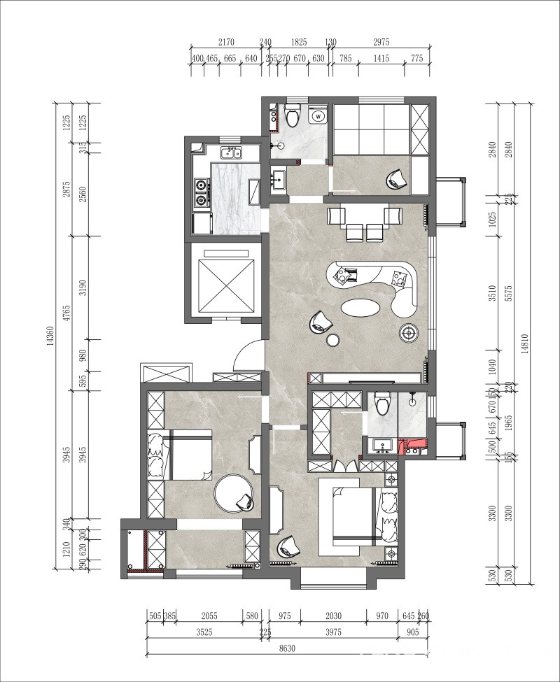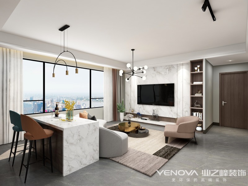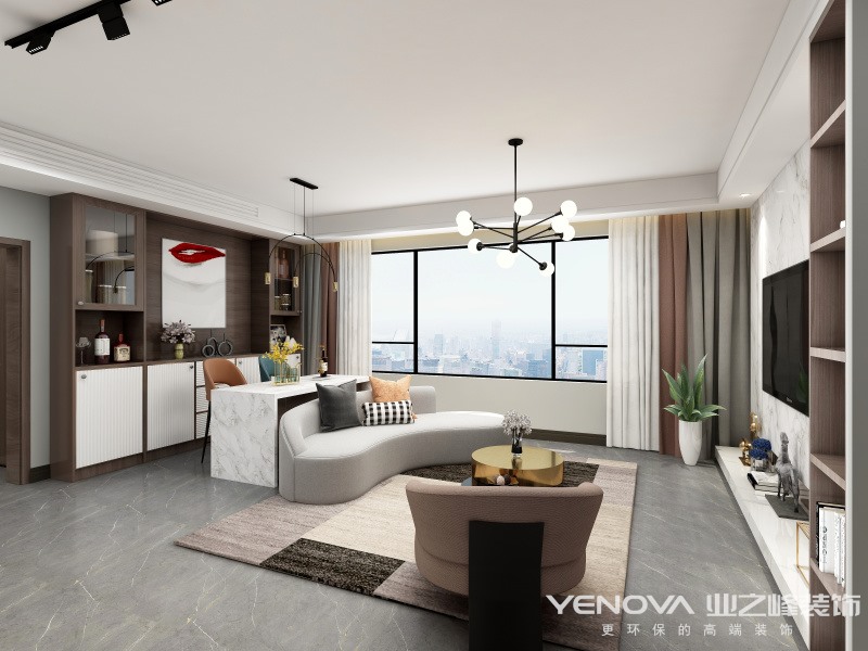 小区:红堡天邑 面积:128㎡ 户型:三居 风格:现代简约风格