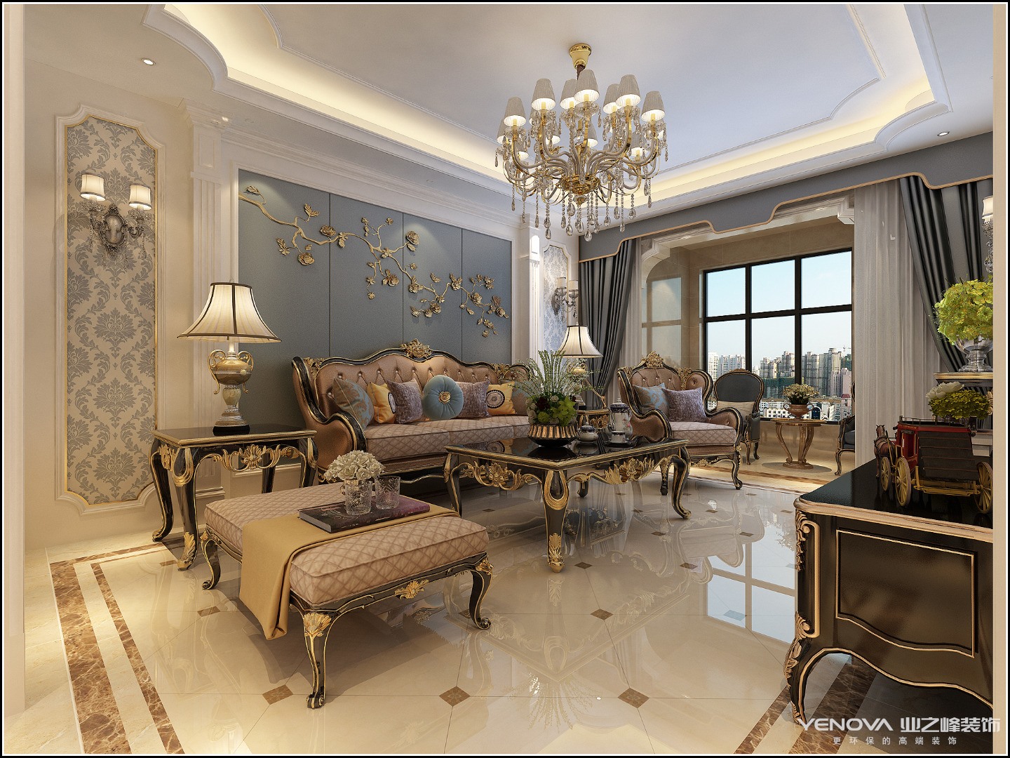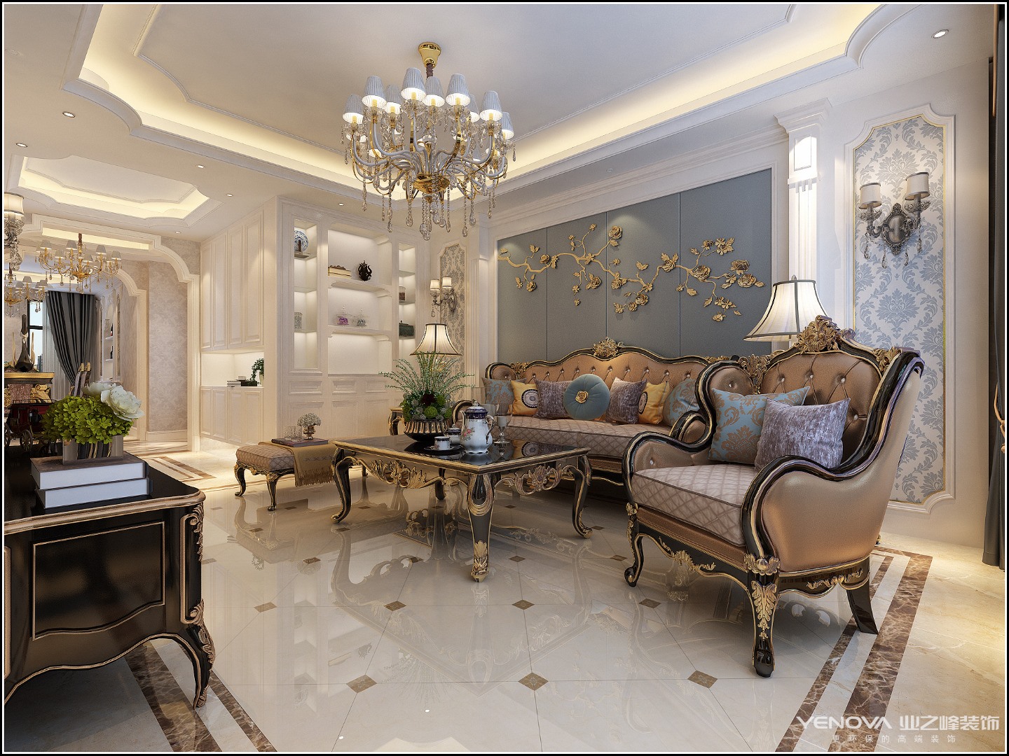 古典欧式风格别墅装修最大的特点是在造型上极其讲究,给人的感觉端庄典雅、高贵华丽,具有浓厚的文化气息。在家具选配上,一般采用宽大精美的家具,配以精致的雕刻,整体营造出一种华丽、高贵、温馨的感觉。