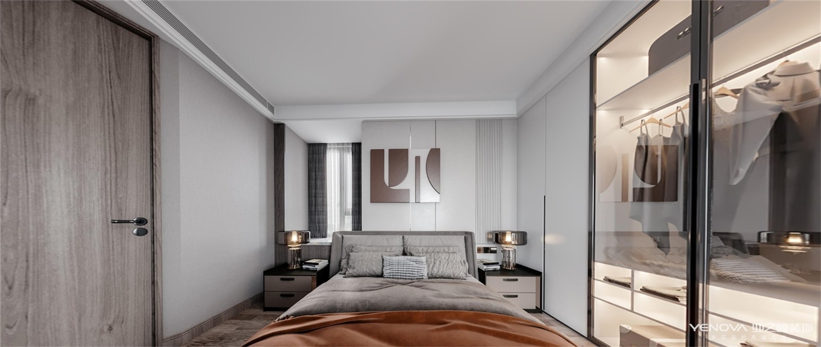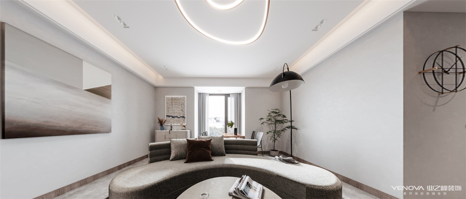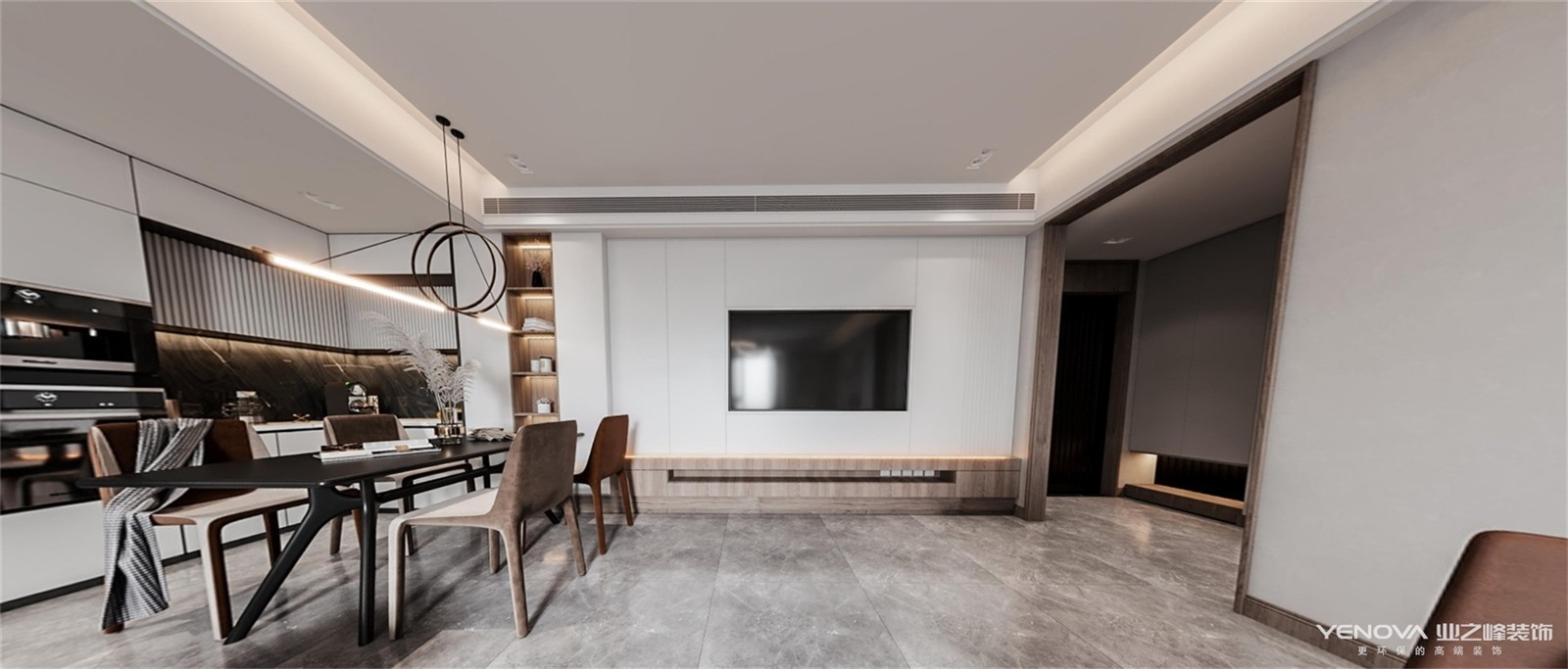 本案的主题为现代简约风格,业主坦言是受了电影的影响,对装修的颜色产生了颠覆性的认知,并且希望在整体房子面积不大的情况下呈现出他想要的感觉。所以此案在色调选择上,白色为主调,黑色,灰色,原木色为辅调,颜色凸显干净、温馨,相辅相成,缺一不可。而在此案例中原先的户型南北通透,光线采光俱佳,所以在实际功能的需求性方面并没有去做大刀阔斧的改造。简约利落的电视柜造型与空间整体风格相互呼应,是现代简约定调的设计家居中,不可或缺的重要元素。开放式厨房让整个空间更显大气,不至于整个家装空间的走道过于狭长,产生压抑感且影响采光。在案例中,以咖色等暖色的陈设艺术品来营造大气、自然、简约的装饰美学氛围。墙面、地面、家具陈设等均以简洁的造型、精细的工艺为其特征,强调品质感和细节处理。
