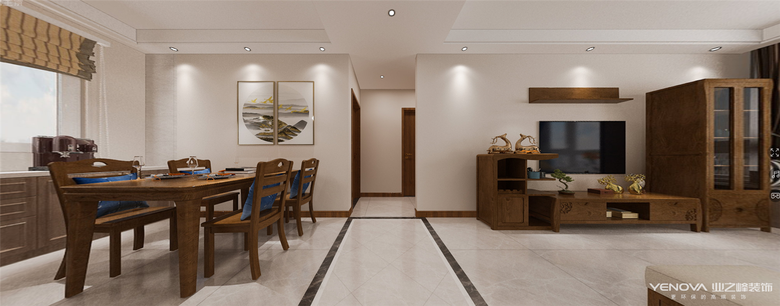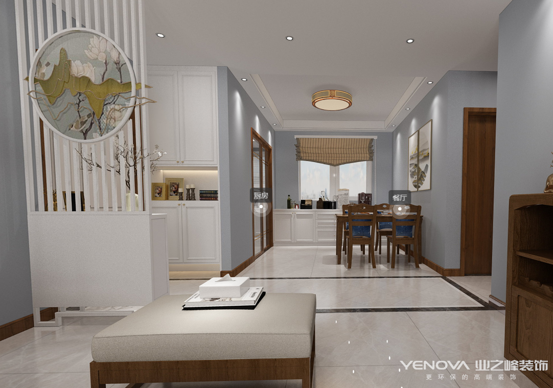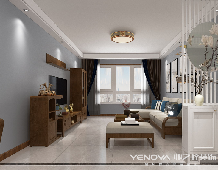 新中式,居室重视个性和创造性的表现,即不主张追求高档豪华,空间组织不再是以房间组合为主,空间的划分也不再局限于硬质墙体,而是要“以人为本”,注重会客、餐饮、学习、睡眠等功能空间的逻辑关系。通过家具、吊顶、地面材料、陈列品甚至光线的变化来表达不同功能空间的划分,而且这种划分又随着不同的时间段表现出灵活性、兼容性和流动性。