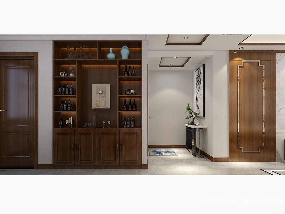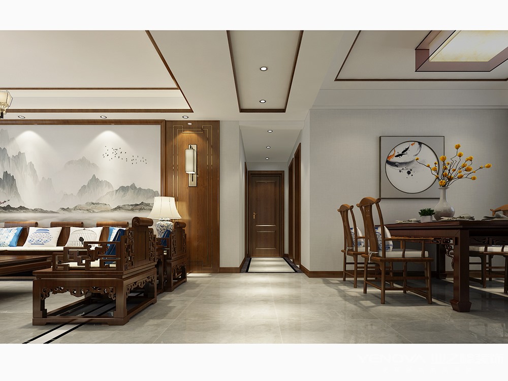 中式风格非常讲究空间的层次感,在需要隔绝视线的地方,则使用中式的屏风或窗棂、中式木门、工艺隔断、简约化的中式“博古架”,通过这种新的分隔方式,单元式住宅就展现出中式家居的层次之美。再以一些简约的造型为基础,添加了中式元素,使整体空间感觉更加丰富,大而不空、厚而不重,有格调又不显压抑。