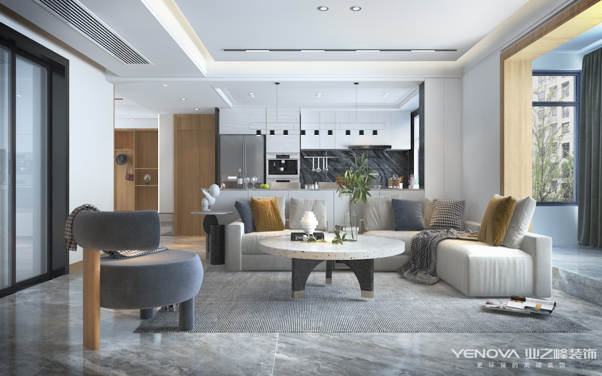 小区:千田新开元 面积:130㎡ 户型:三居 风格:现代简约风格