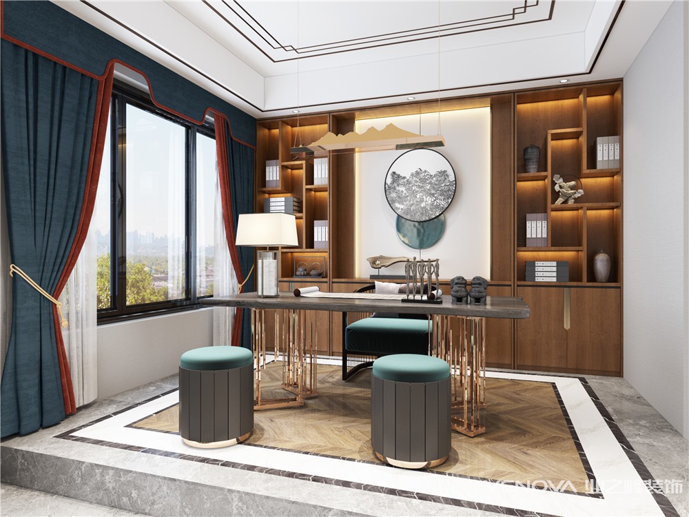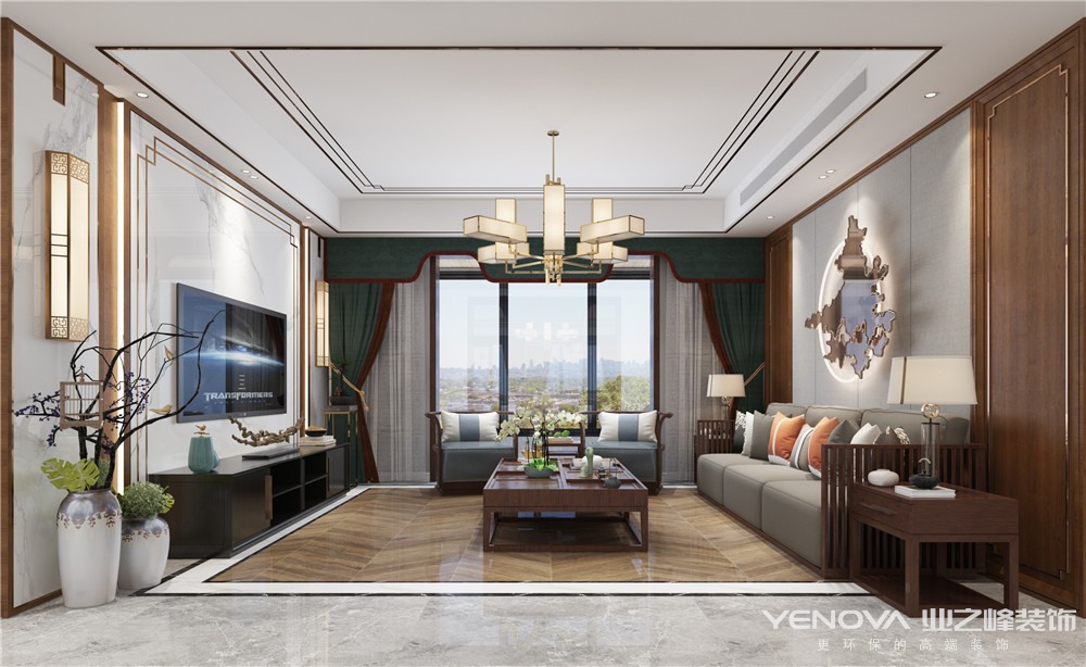 小区:建业森林半岛 面积:168㎡ 户型:四居 风格:新中式风格